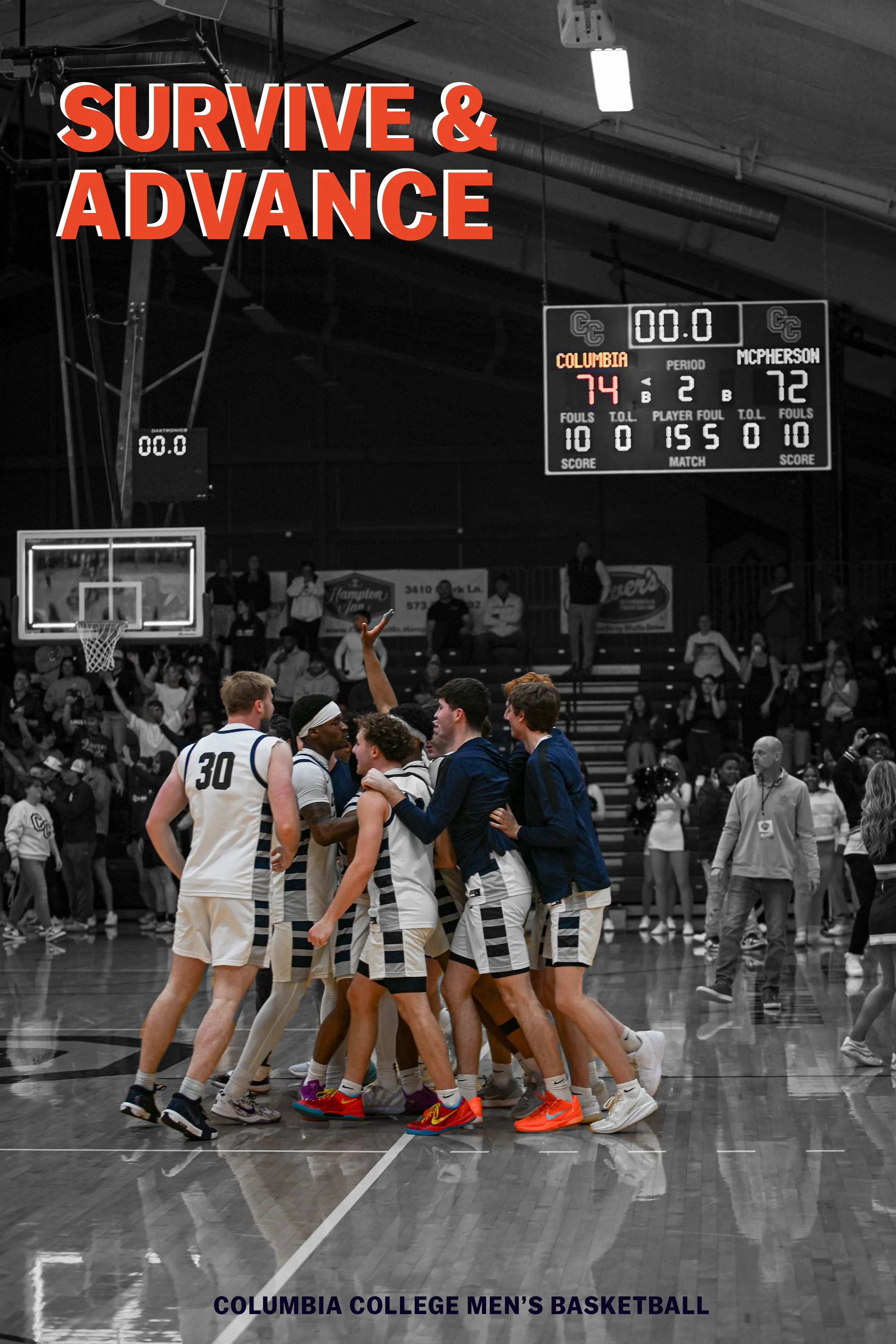 For Columbia College men’s basketball, I created a graphic to highlight an overtime victory by 2 points. The game was electric, and I aimed to emphasize the energy, team, and the score by isolating the colors in the team huddle and on the scoreboard. This isolation guides the viewer’s eye directly to the players and the game-winning score, creating a visually striking image designed for an Instagram story.